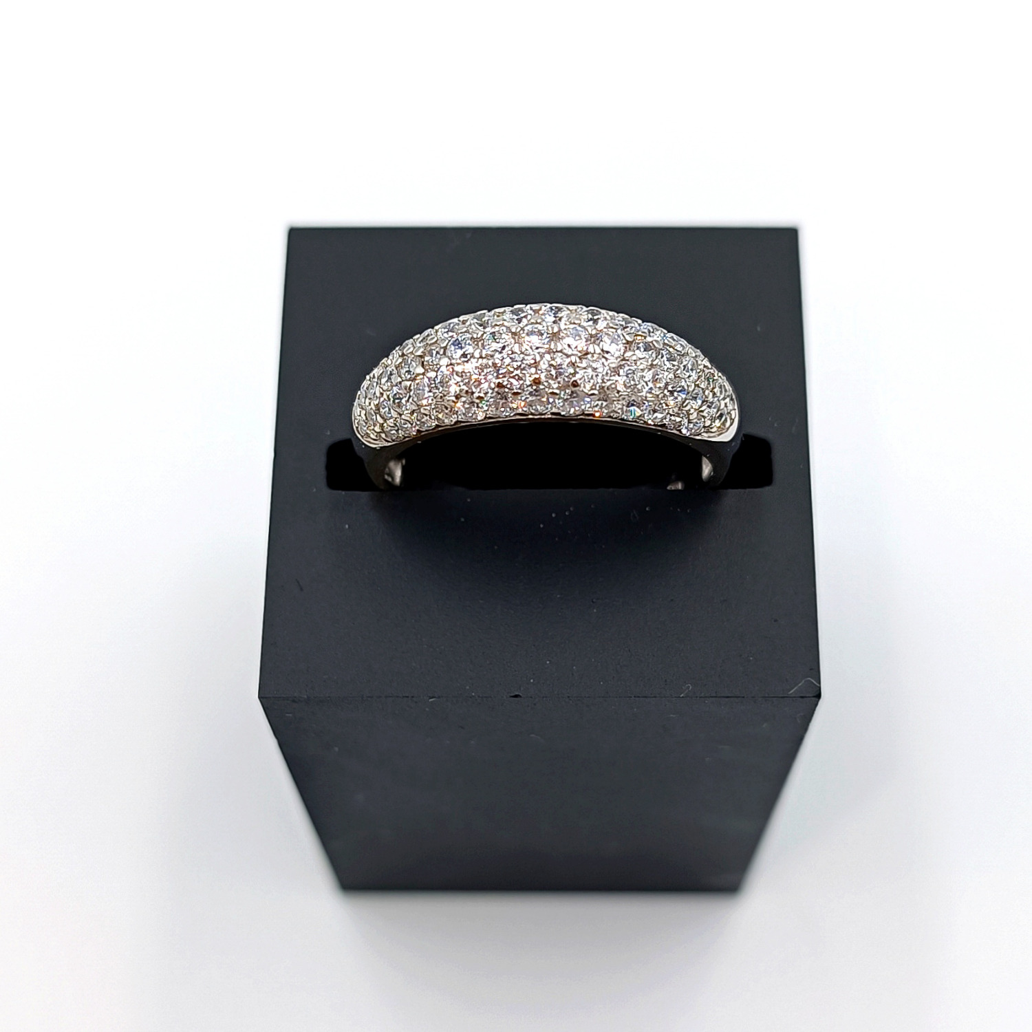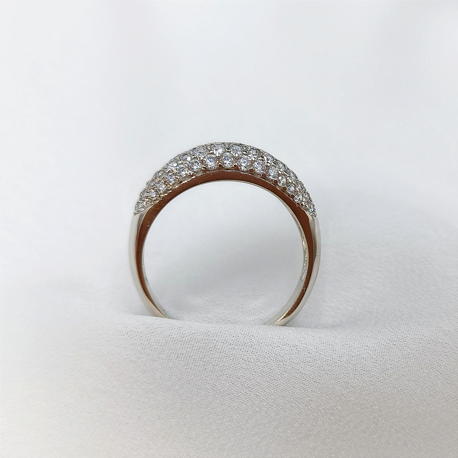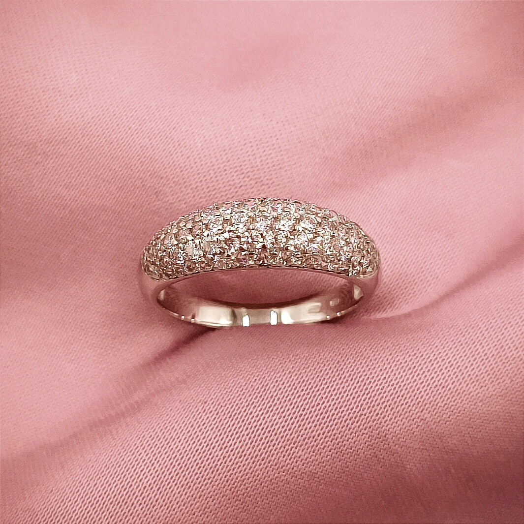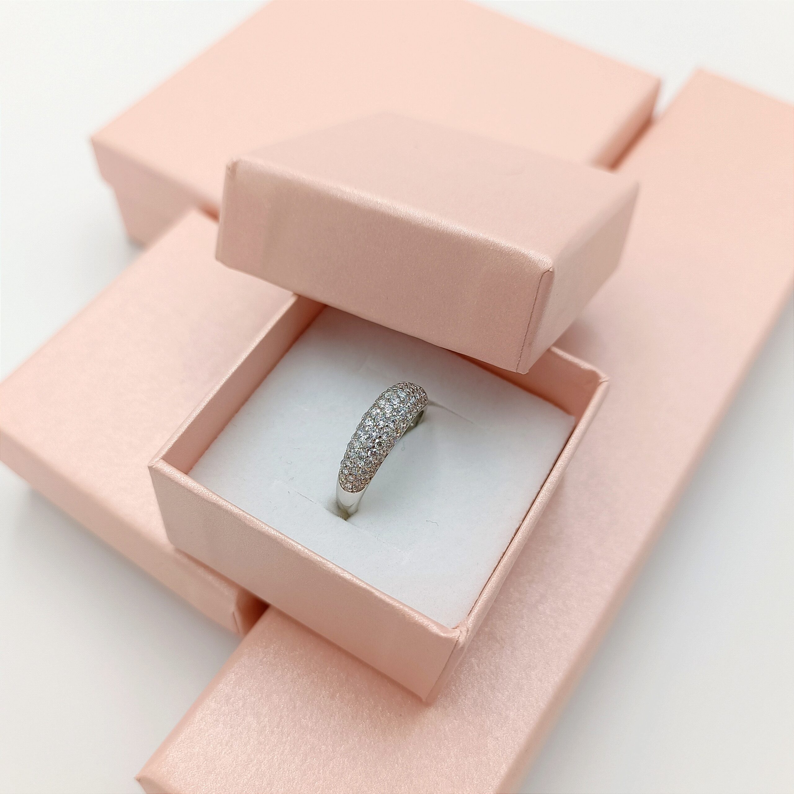 Prsteň z bieleho zlata so syntetickými zirkónmi.